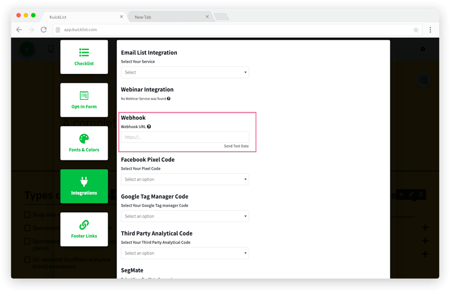 By including this option, you’ll be able to connect Kuicklist with 2000+ integrations easily.
