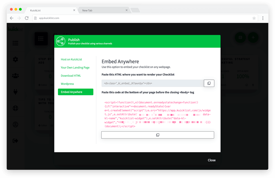 This way you can still access the power of your checklist and use it on your preferred website or blog.